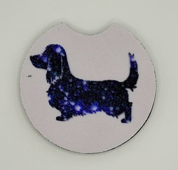 Choose one or more of your favorite neoprene car coasters to put into your car to help keep your cup holder area clean, free of debris and condensation from your drinks. These car coasters are 2-1/2 inches around and fit most vehicles. Use the notch on the side of the coaster to easily remove the coaster out of the cup holder. Choose your favorite design and color to make the perfect gift for that special someone or keep it for yourself. You can choose your favorite design from our multiple designs within each of our dachshund collection (dachshund silhouette, long hair dachshund, doxies around a heart, doxie with a heart, doxie in a heart, kissing dachshunds, dachshund chasing a butterfly, dachshund with a butterfly on its nose, doxie with “love” and more), various dog breed collection (including chihuahua, Aussie, boxer with ears up or down, Frenchie, Labrador, pit bull, Pomeranian, sheepdog, great dane with ears up or down, jack Russell, husky, sheltie, german shepherd, corgi, beagle, papillon, poodle, pug, schnauzer, yorkie and more), marine life collection (including duck, penguin, sea lion, sea shells, manatee, turtles, seahorses, dolphins, swans and more), wild life collection (including badger, snake, wolves, butterflies, cardinals, ravens, owls, deer, and more), specialty collection (which includes a variety of crosses, roses, hearts, music notes, music symbols, elves, castles, symbols, phoenix, paw, paw in a heart, and more) or domestic collection (including cats, horses, unicorns, horseshoes, rabbits).