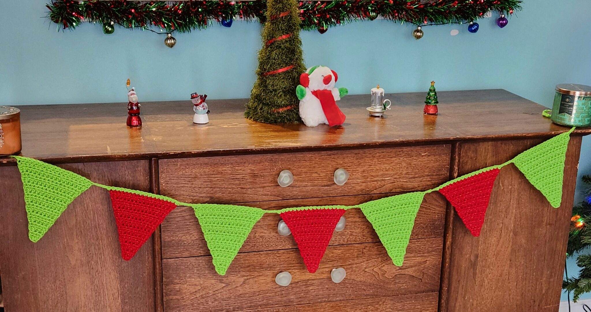 Each bunting is handmade crochet and as such they do need to be gently shaped after hanging. This can be accomplished by simply pulling a little bit on the sides equally, working your way down each triangle. Once shaped, they will stay that way until you take them down!
