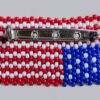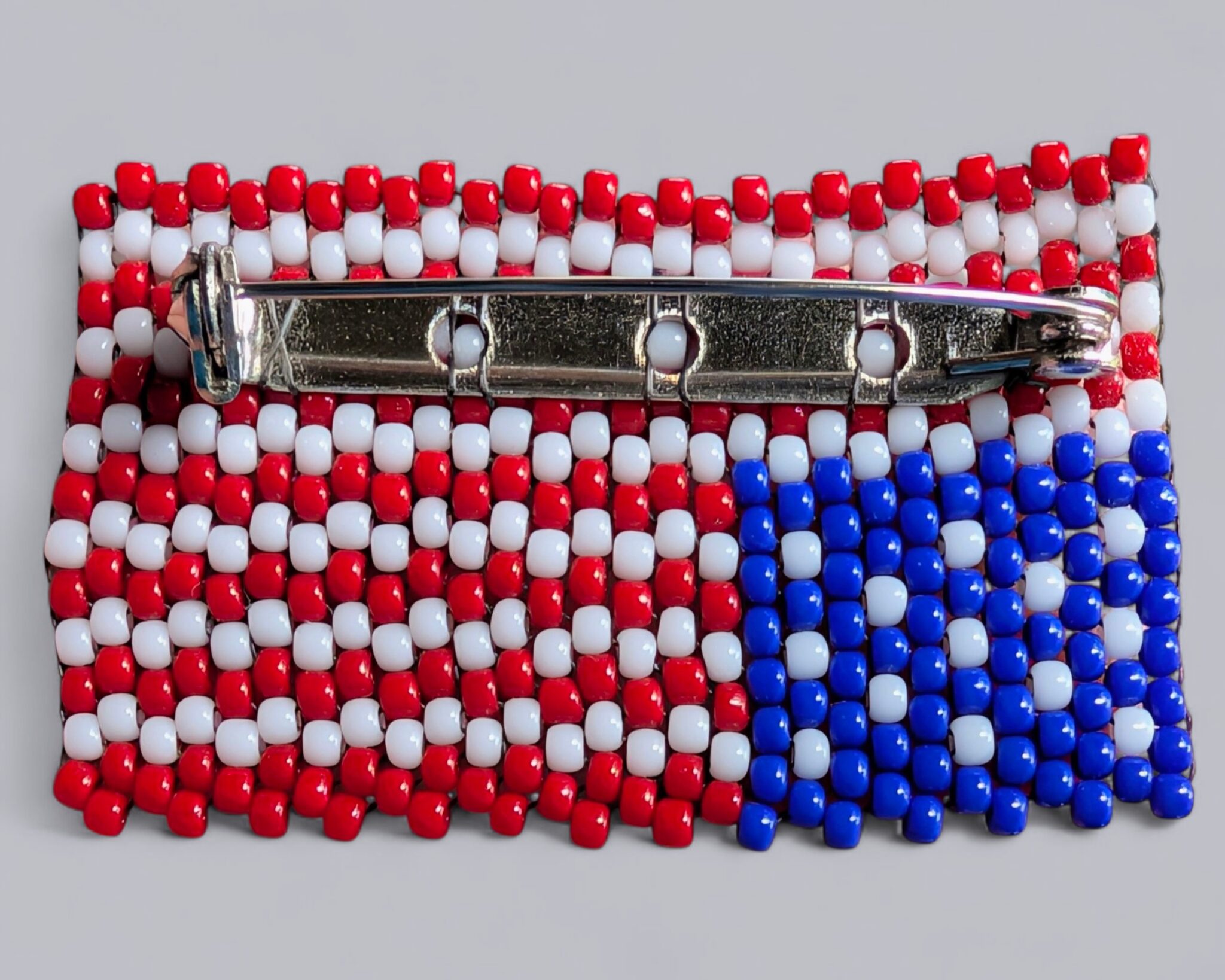A pin beaded using Czech and Japanese seed beads, 6lb Fireline, and a stainless steel bar pin back. *The bar pin is sewn on, not glued.