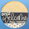 This is a dog theme welcome DIY (Do It Yourself) wood sign craft paint kit. It says, “Dogs Welcome People Tolerated.” The pieces are laser cut on 1/4″ & 1/8″ inch thick wood. The black & white wood pieces can not be painted only the back piece can. It does not stand up on its own. It does not have a hole for hanging. Glue NOT included. This is NOT a finished and completed sign. You assemble it, glue it together, and paint it.