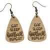 Eat, Sleep, Football, Repeat Engraved Wood Dangle Earrings- Handmade Sports Jewelry