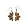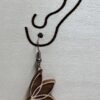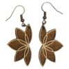 These are a pair of laser cut lightweight lotus flower wood dangle earrings. There is no design on the back. They are made from 1/8 in thick medium maple hardwood. They are on ear wires. All metal components are silver, gold, or brass plated, or black alloy, nickel & lead free, and hypoallergenic. They are approx. 1.5” in long. Backs not included but available upon request.