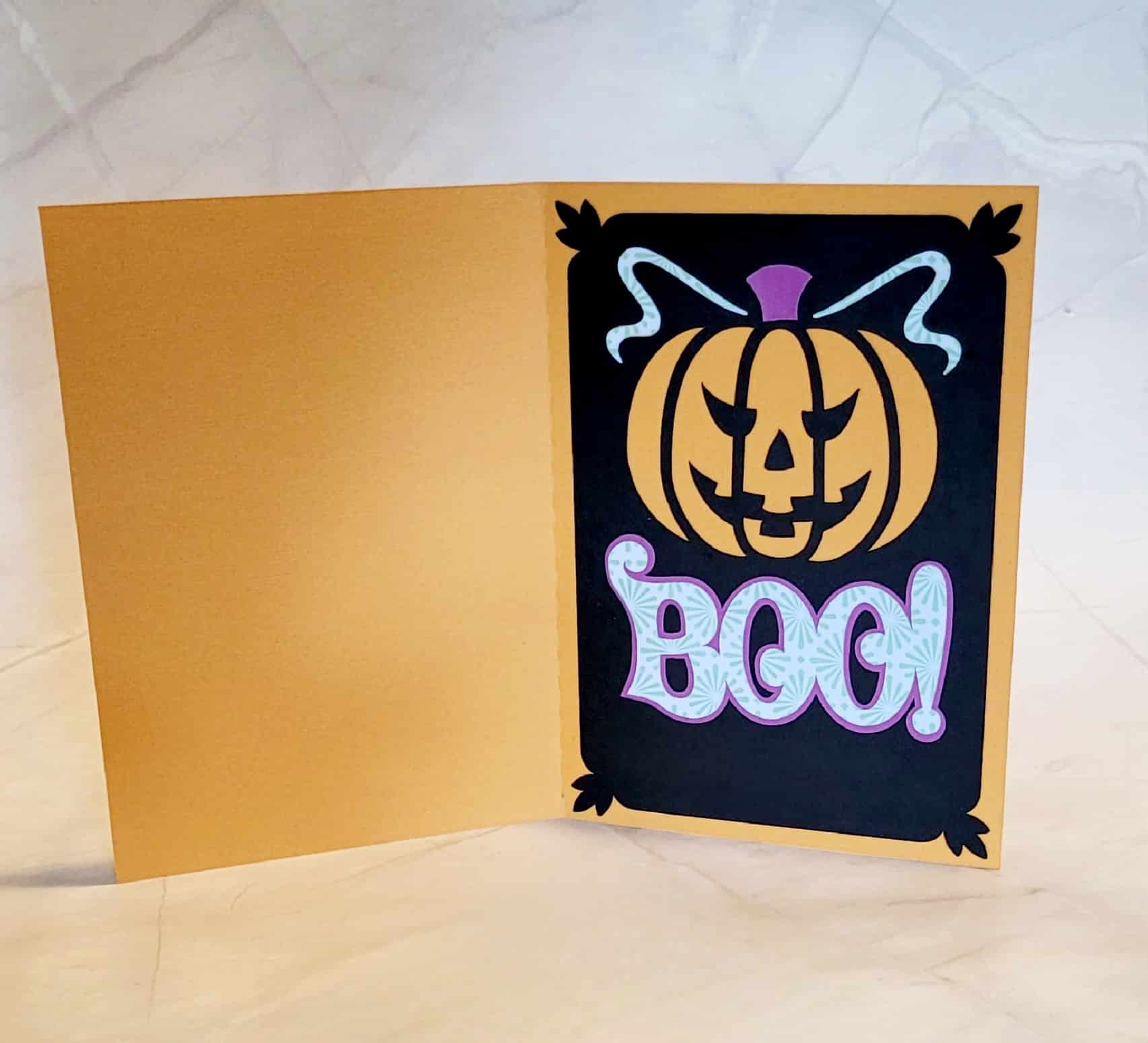 Halloween Boo Card is a greeting card made with the Halloween spirit in mind. This card is great for family and friends and has enough room for a personal note.
