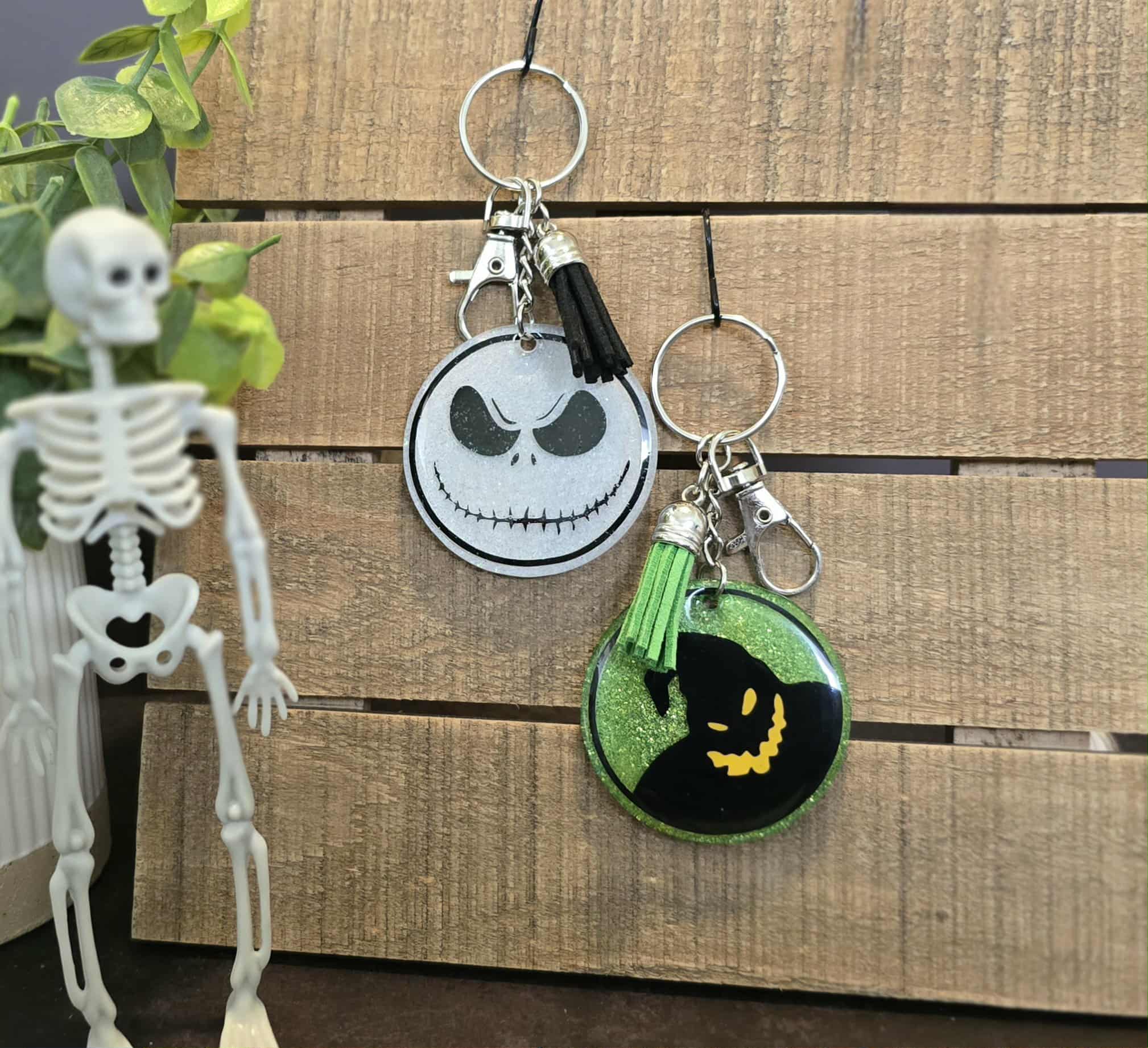 Halloween Glitter Keychain Boo Spooky Nightmare Before Christmas Jack Skellington Oogie Boogie