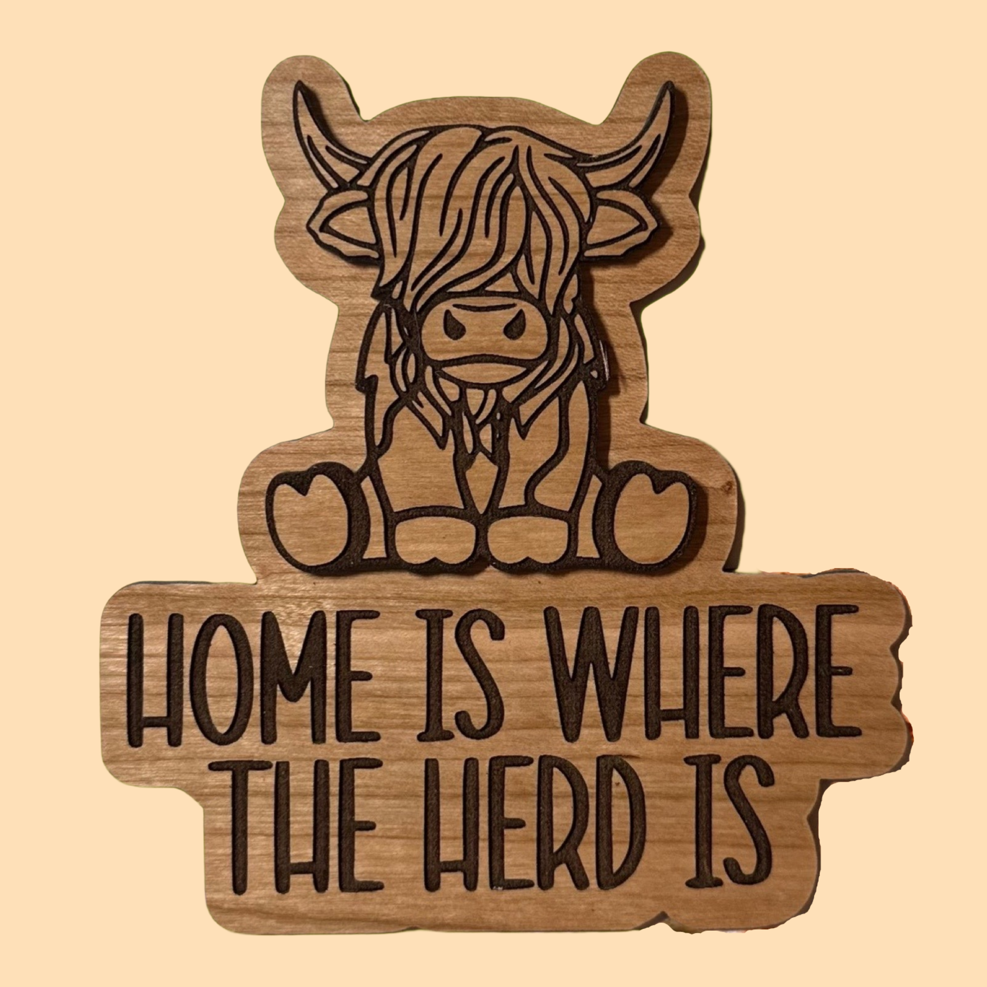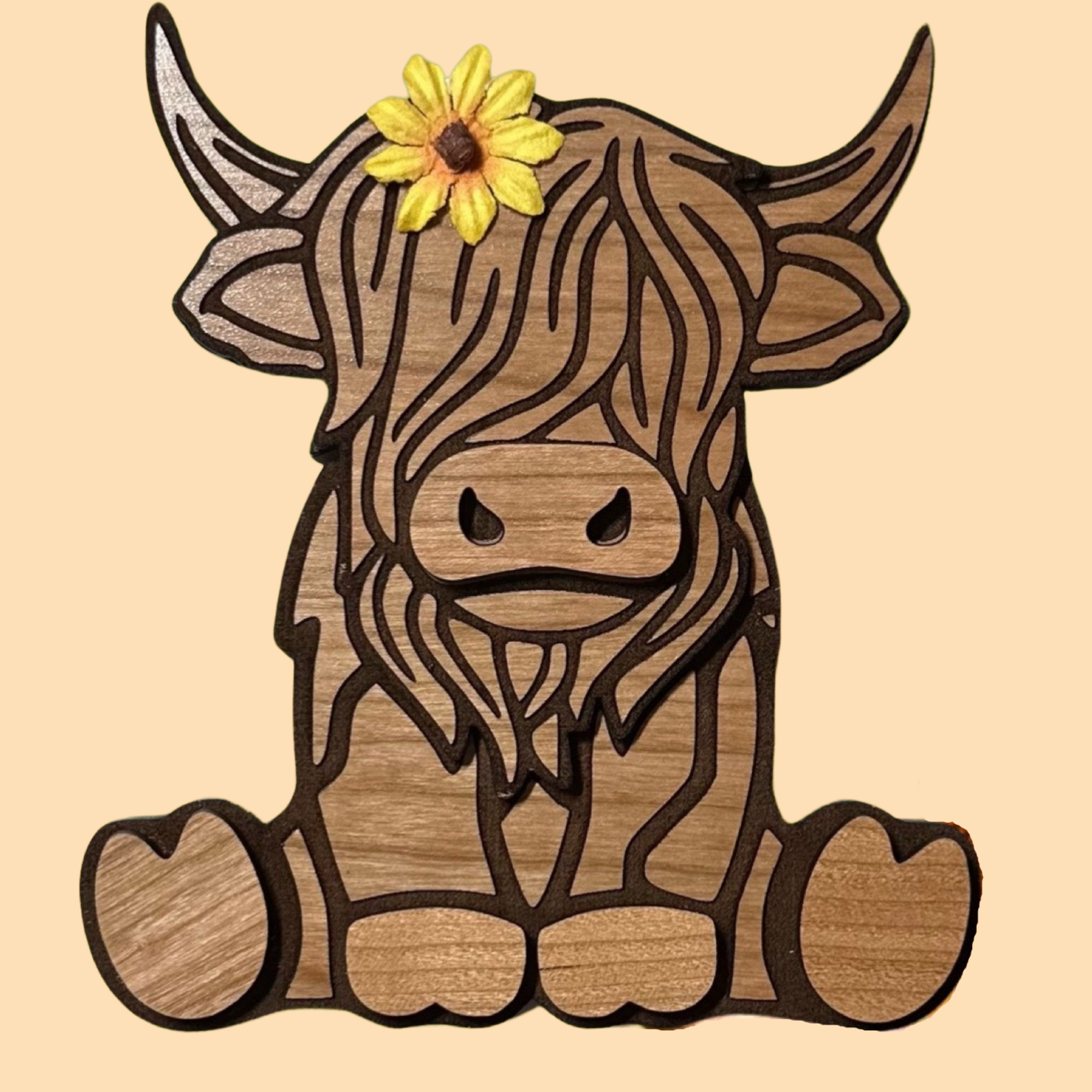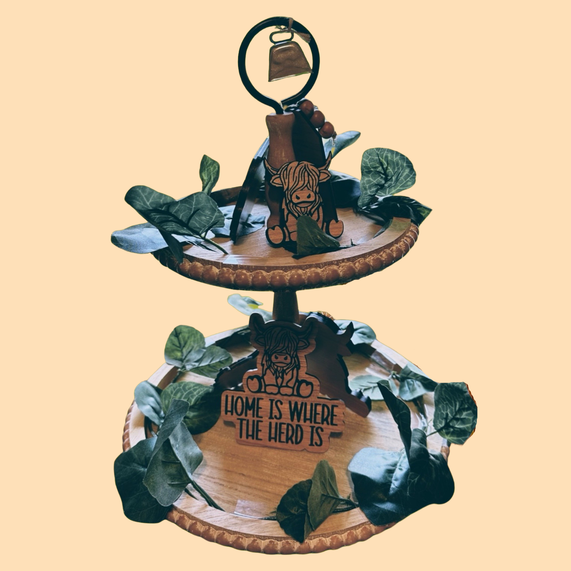 Highland Cow Wooden Tray Set Home Decor with Optional Tiered Tray