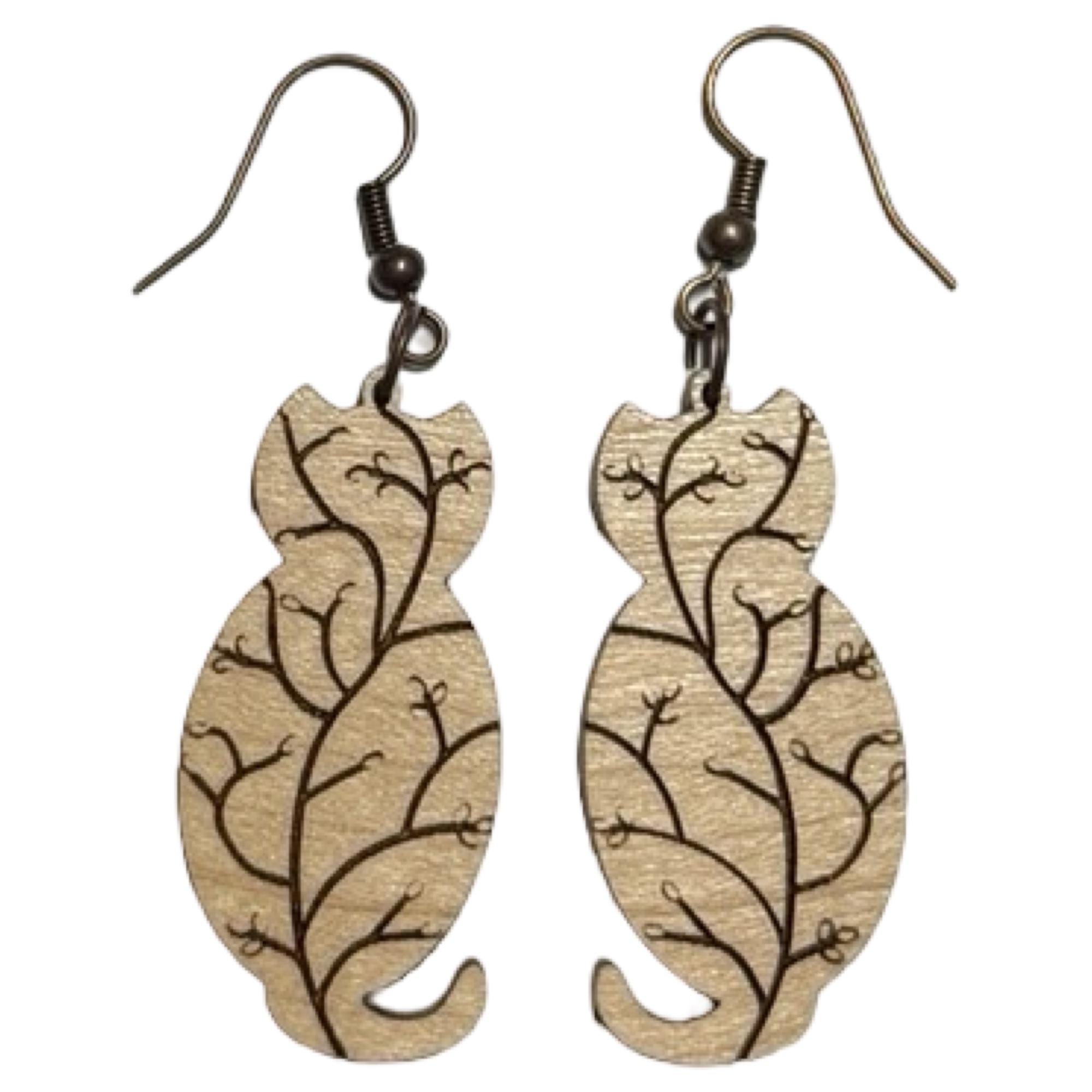 Kitty Willows Wood Earrings: Lightweight Laser Cut Dangles