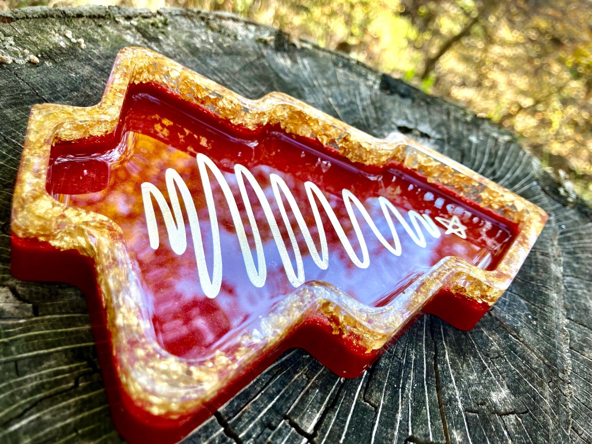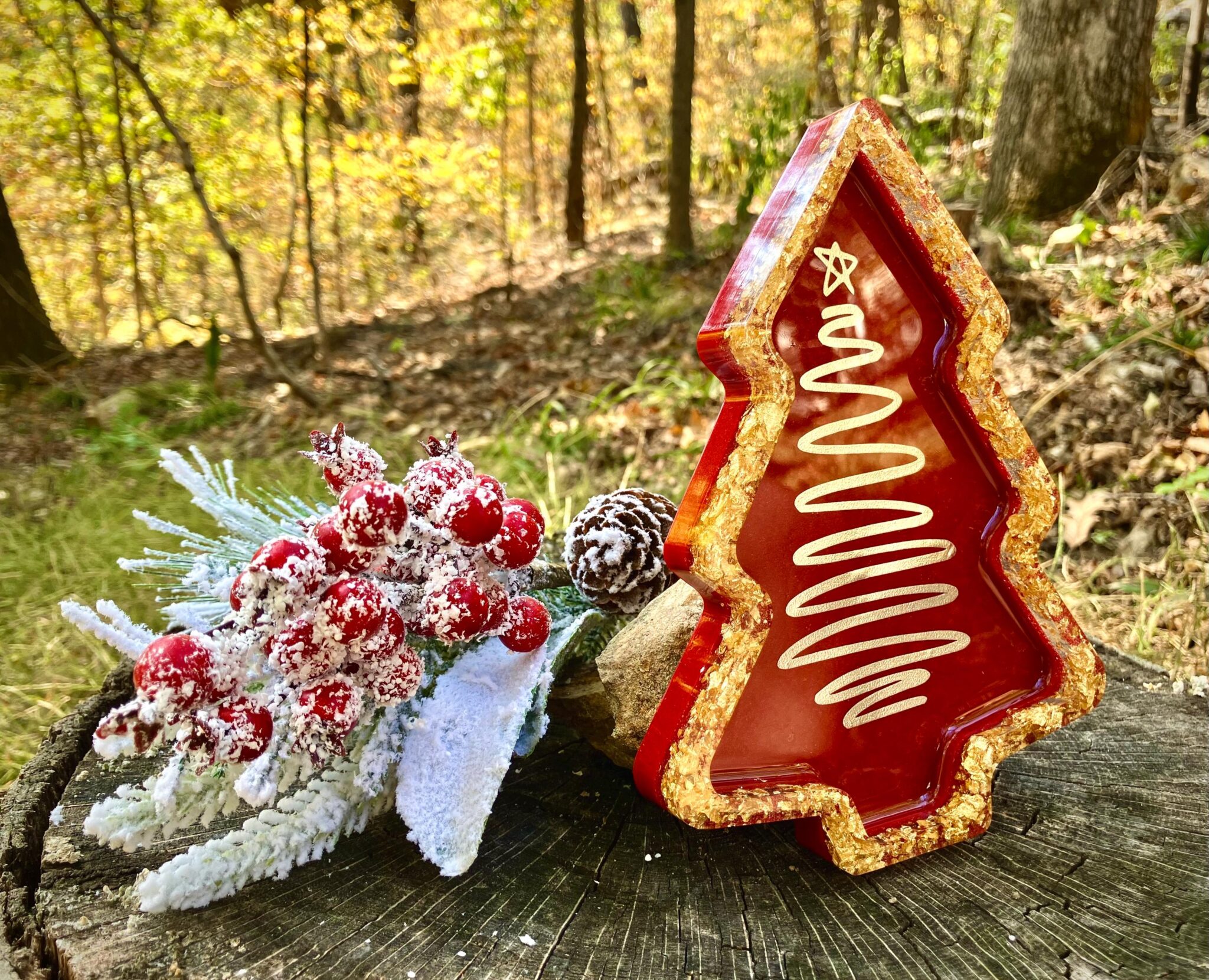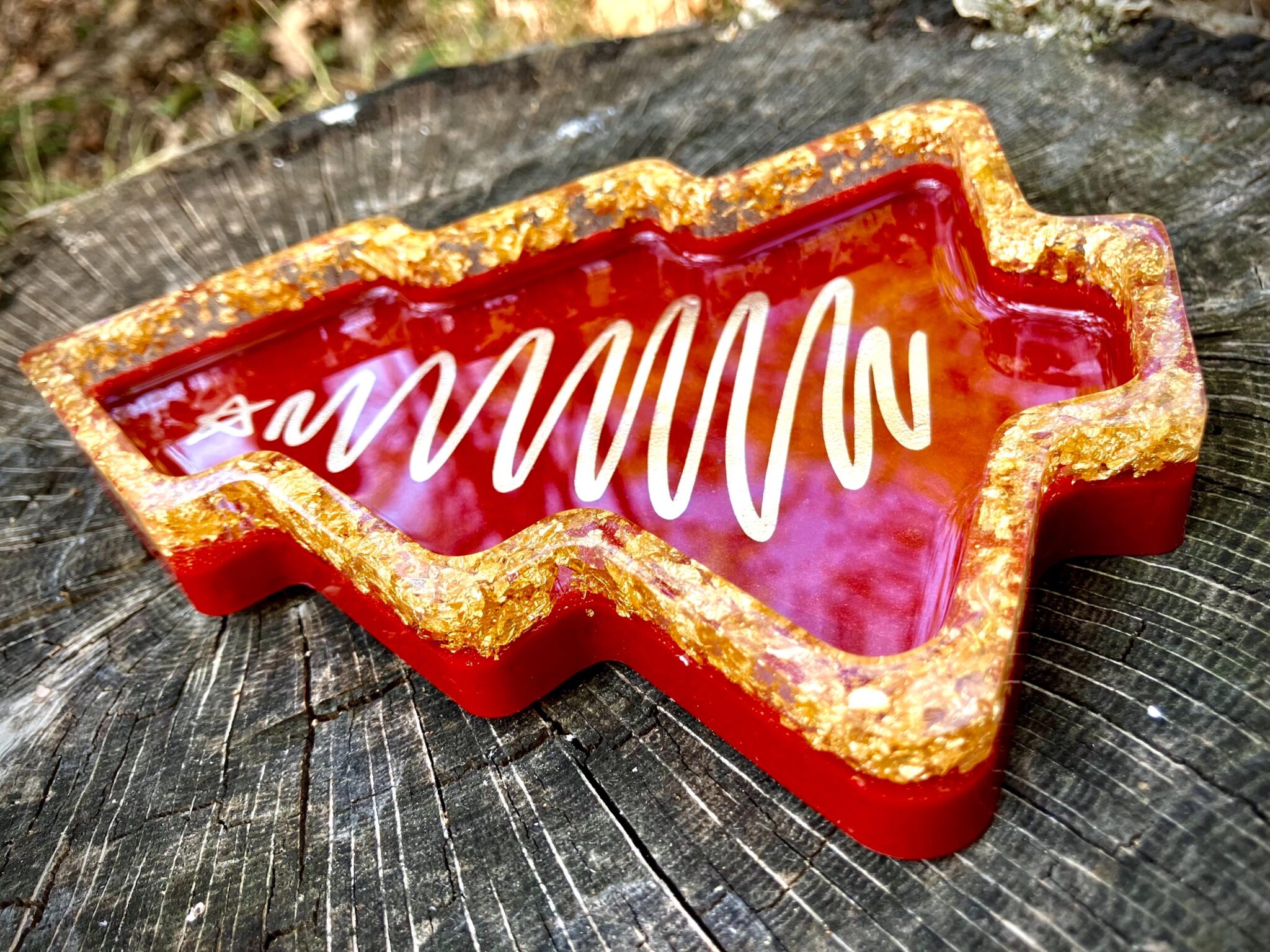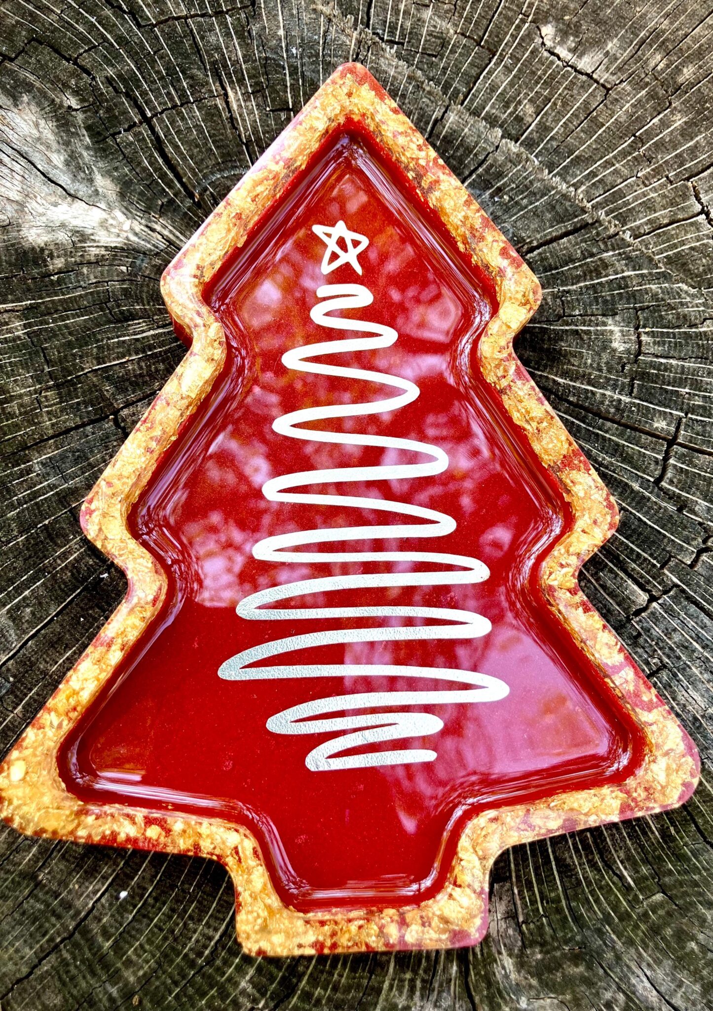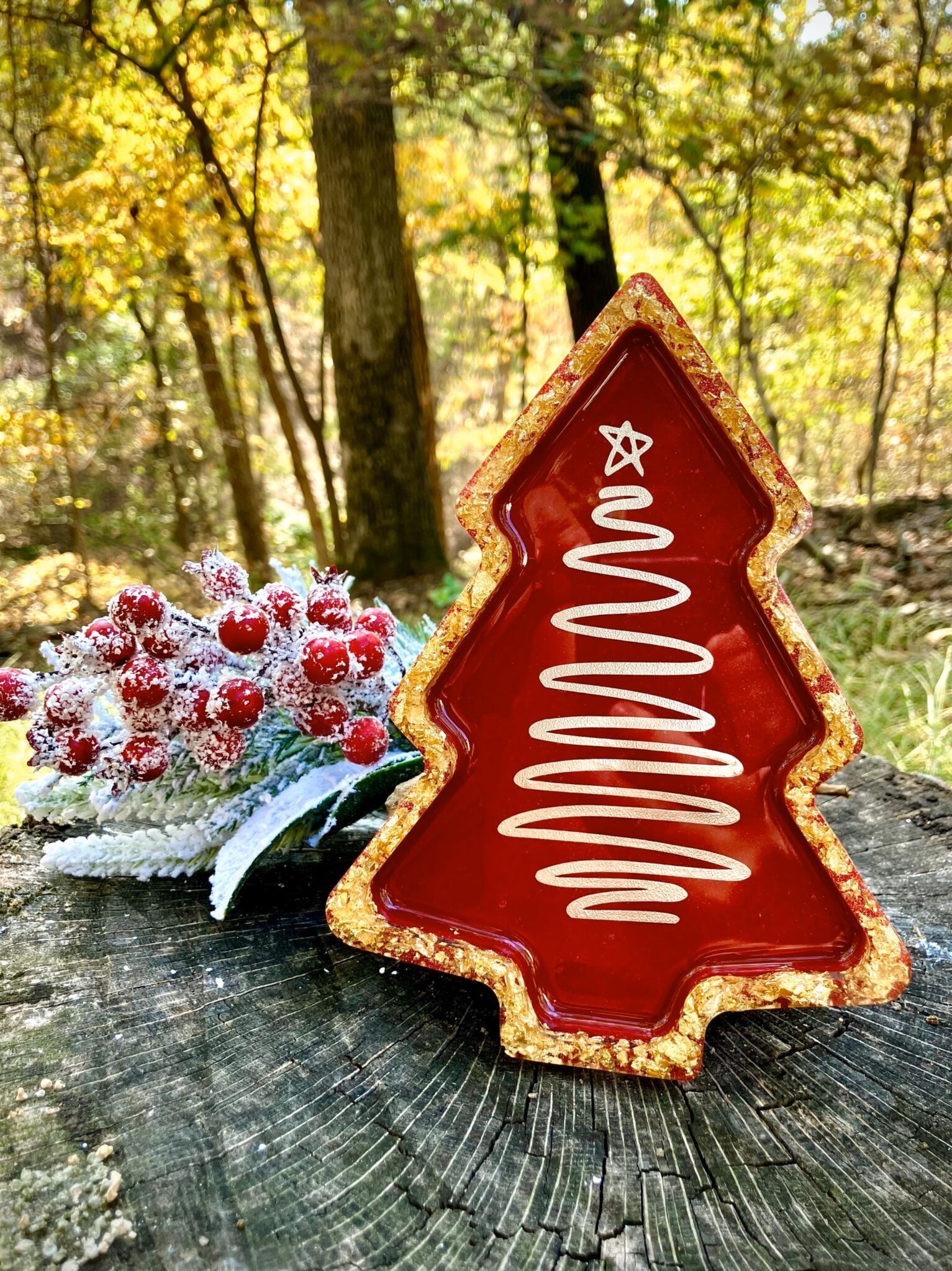 Luxurious Red & Gold Resin Tray | Holiday Mantle Accent | Christmas Gift Idea
