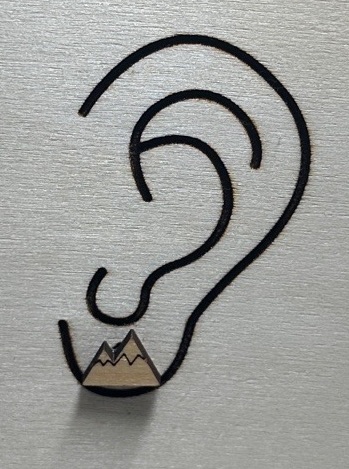 These are a pair of laser cut lightweight mountain stud wood earrings. They are made from 1/8 in thick medium basswood hardwood. All metal components are stainless steel, hypoallergenic posts. They are approx. .25″ in long. Butterfly backs included.