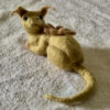 Just waking up, this little one gazes at you for an afternoon treat or maybe a scratch behind his ear-horns. Perfect for any holiday to hang on a tree or display on a shelf. Made from natural wool fibers