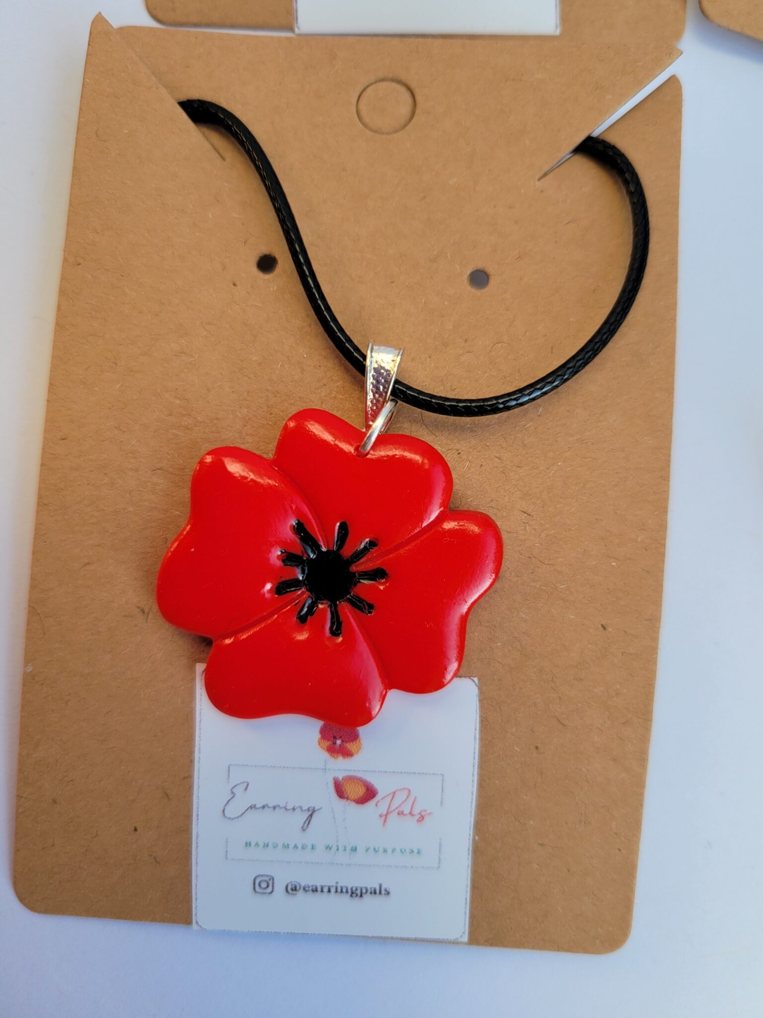 Poppy flower, symbol of Palestinian resilience and connection to the land, turned into a polymer clay pendant. Make a statement wearing this bold colored flower and show your support for the Palestinian cause.