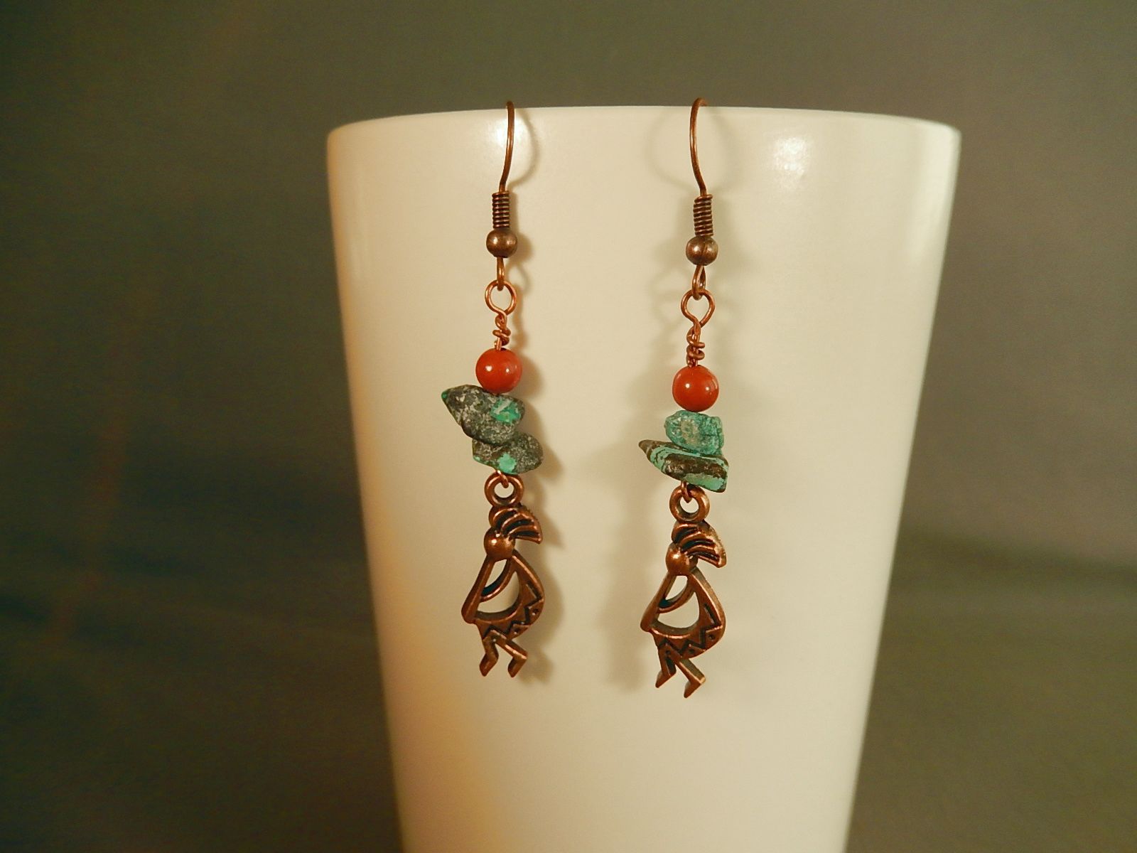 Southwestern copper earrings with Kokopelli charm and gemstone beads