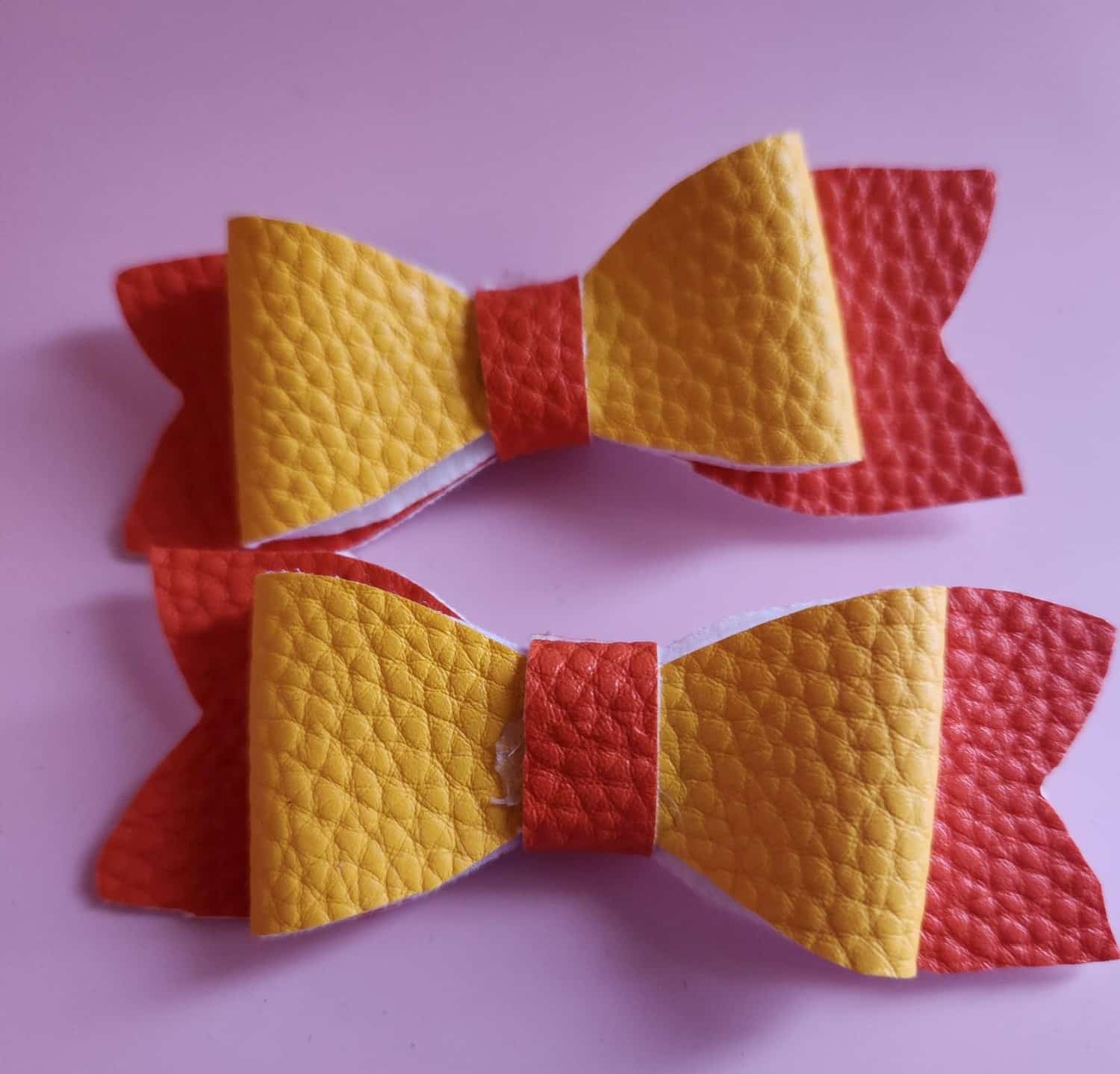 A set of two small but stunning Vegan Leather Hair Bows in cheerful yellow and bold orange. Crafted from sustainable, cruelty-free materials, these bows offer a burst of color to elevate any hairstyle. Whether you wear them individually for a pop of brightness or together for fun and dynamic look, these bows are the perfect accessory for adding a touch of sunshine to your day. Versatile and stylish, they’re a must-have addition to your accessory collection.