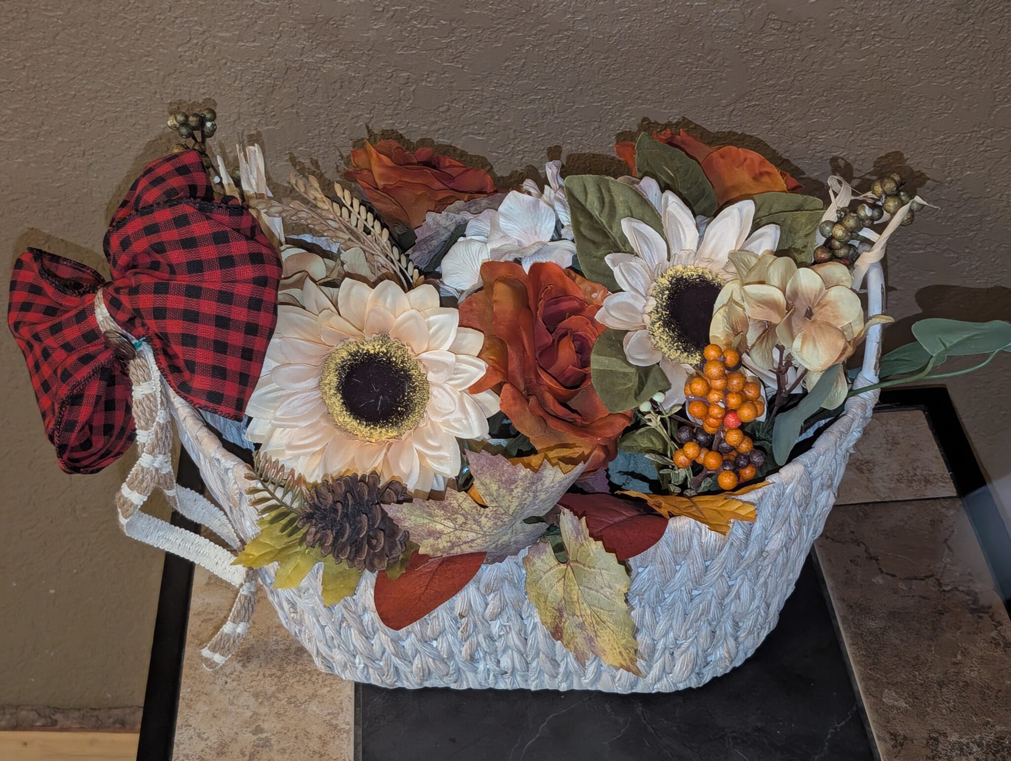 ​”Out here on the ranch, the changing leaves call for cozy textures and timeless patterns! This delightful Farmhouse Fall Centerpiece Basket is the perfect way to bring that classic, rugged country warmth right into your home for the season.