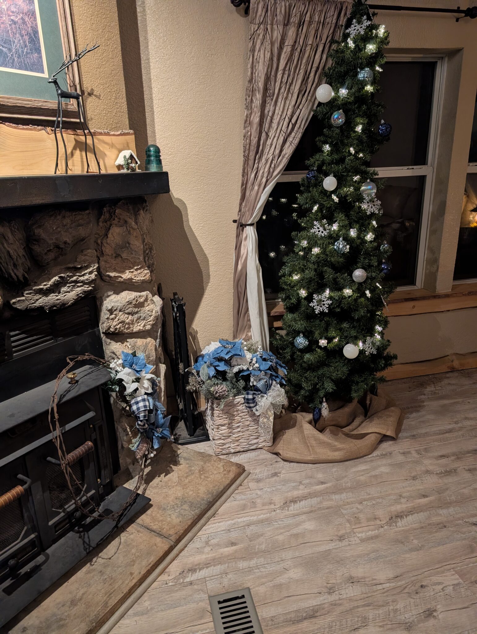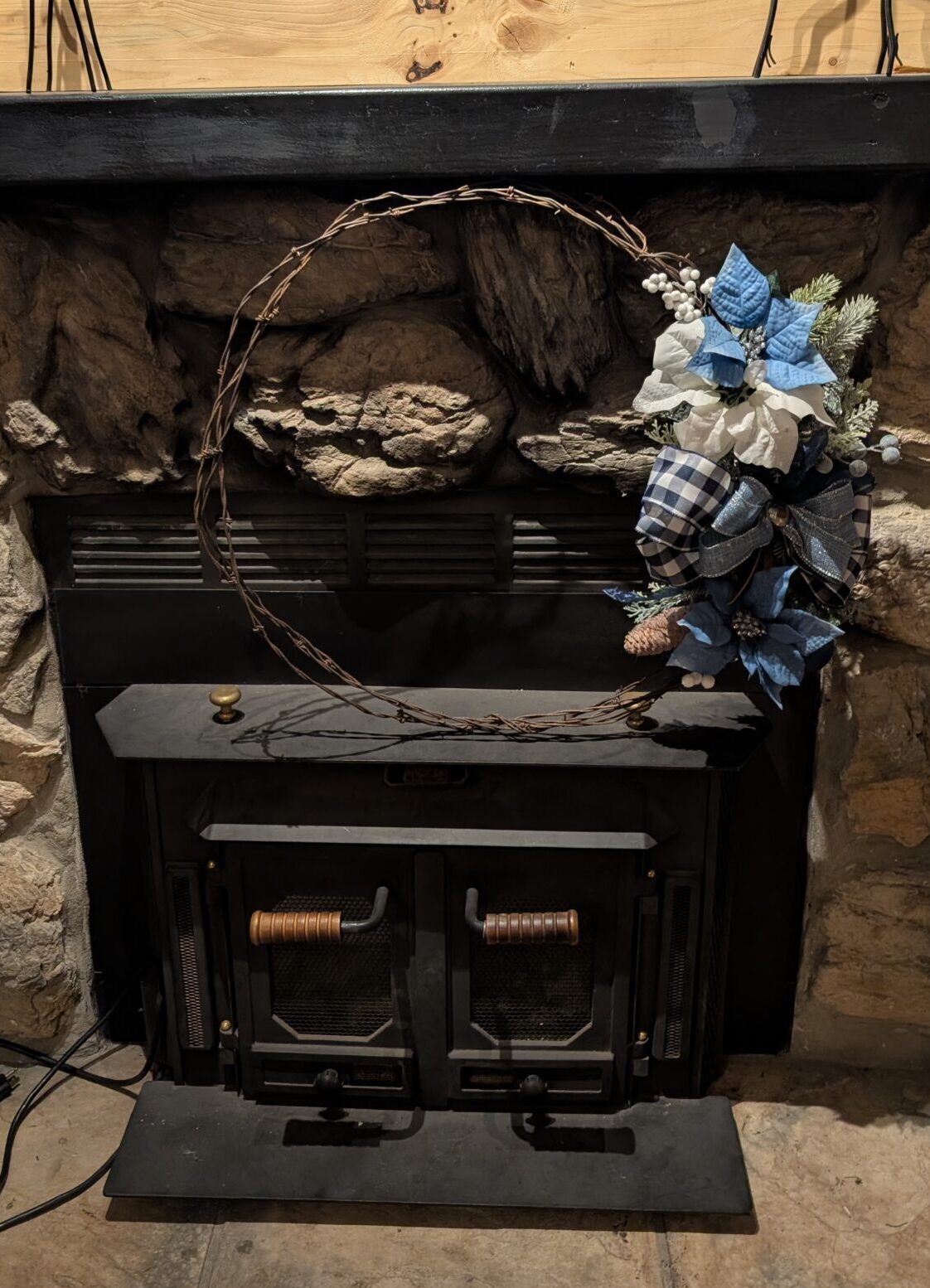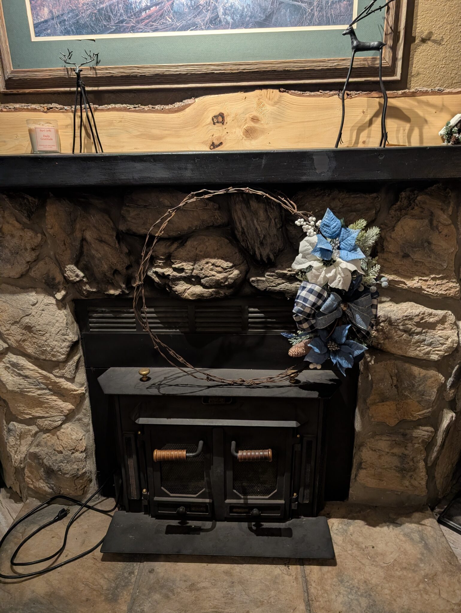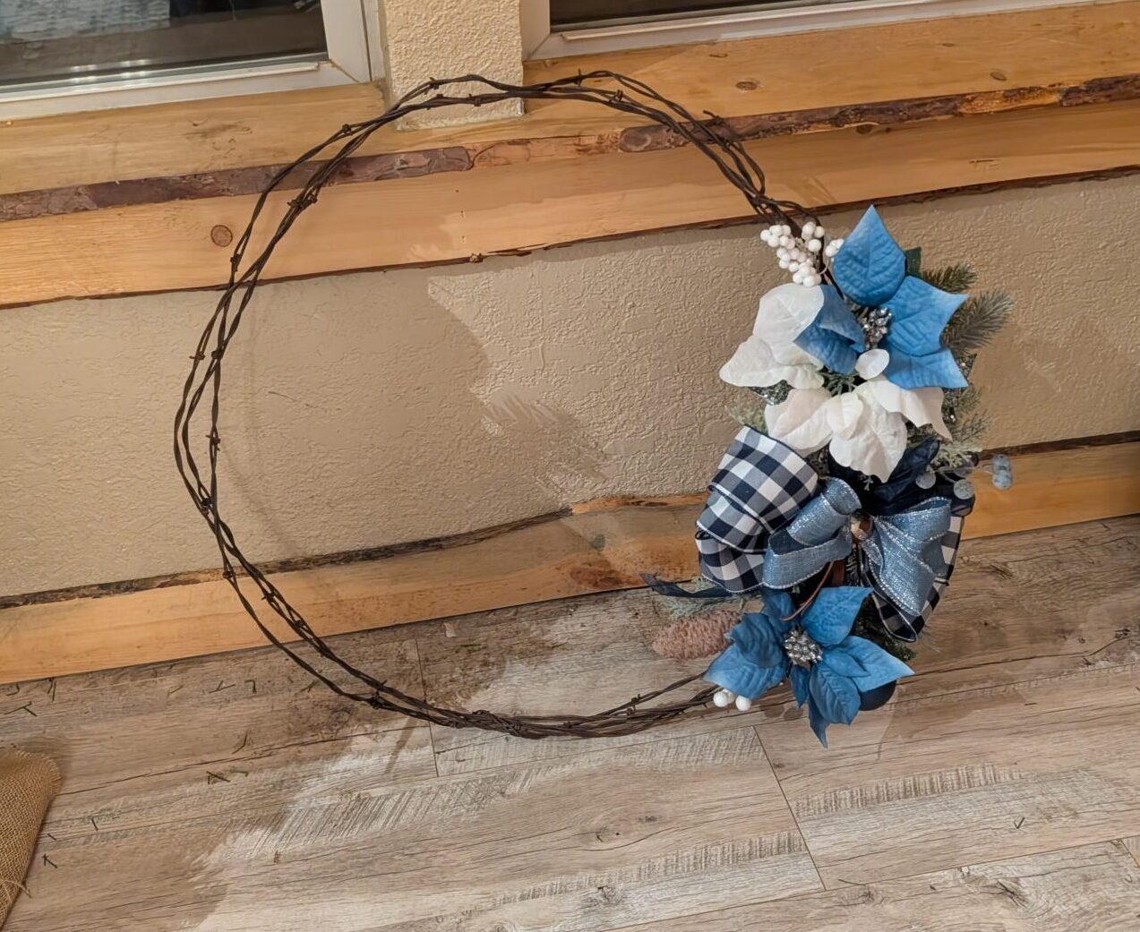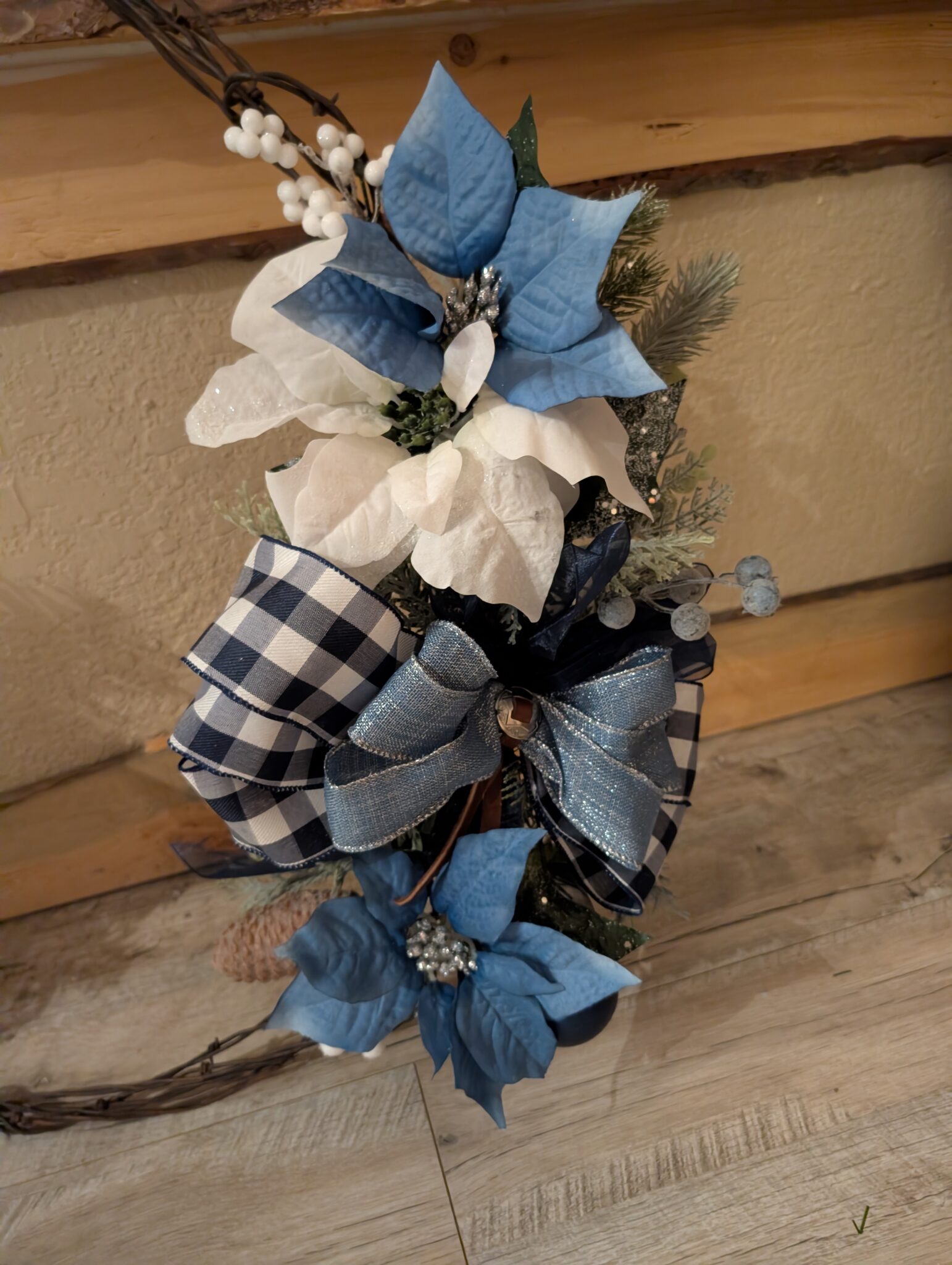 Hang this piece above your mantle (as pictured!), on your front door, or anywhere you need a high-impact dose of Rustic Blue Christmas cheer. It’s handmade, mountain-inspired, and ready to welcome the holidays to your home.”