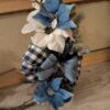 This Icy Rustic Blue Christmas Wreath is finished with layered ribbons, including our favorite navy buffalo check and a glittering sheer bow—a touch of pure winter decor elegance.