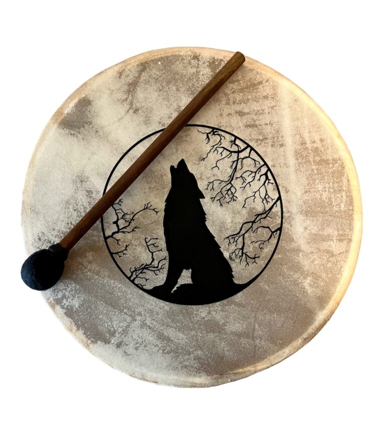Shamanic Wolf Frame Drum with matching Beater Mallet
