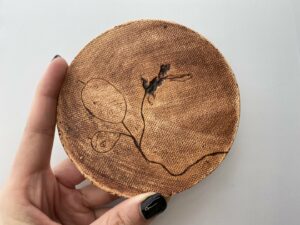 This Money Plant Tile was handmade in Massachusetts using actual plants to create the impressions. Sturdy and ready to serve as a hotplate, coaster, or decorative tile. Approximately 4 1/2 […]